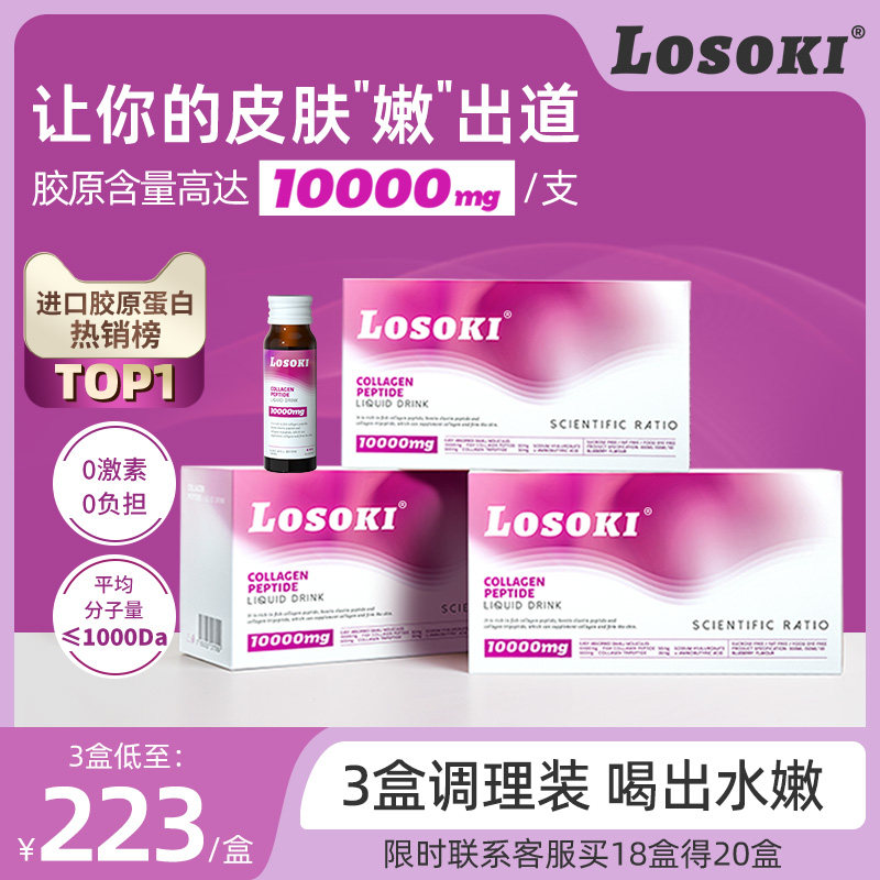 券 5元销量500[3盒}losoki胶原蛋白肽液态饮美白抗口服衰老正品美国进口旗舰店