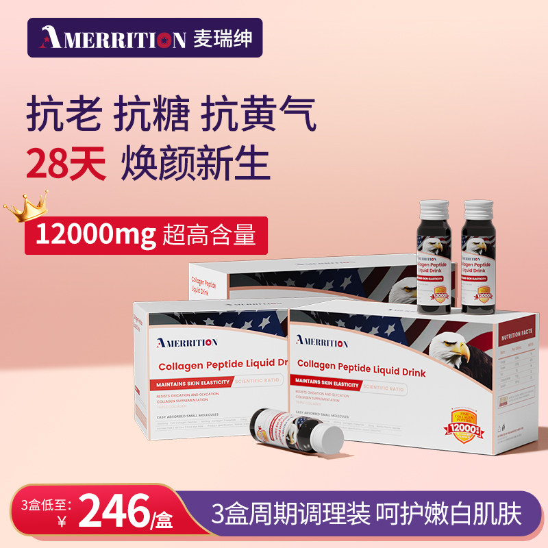 券 10元销量400【3盒装】美国AMERRITION麦瑞绅坤胶原蛋白肽抗糖液态饮祛黄抗氧