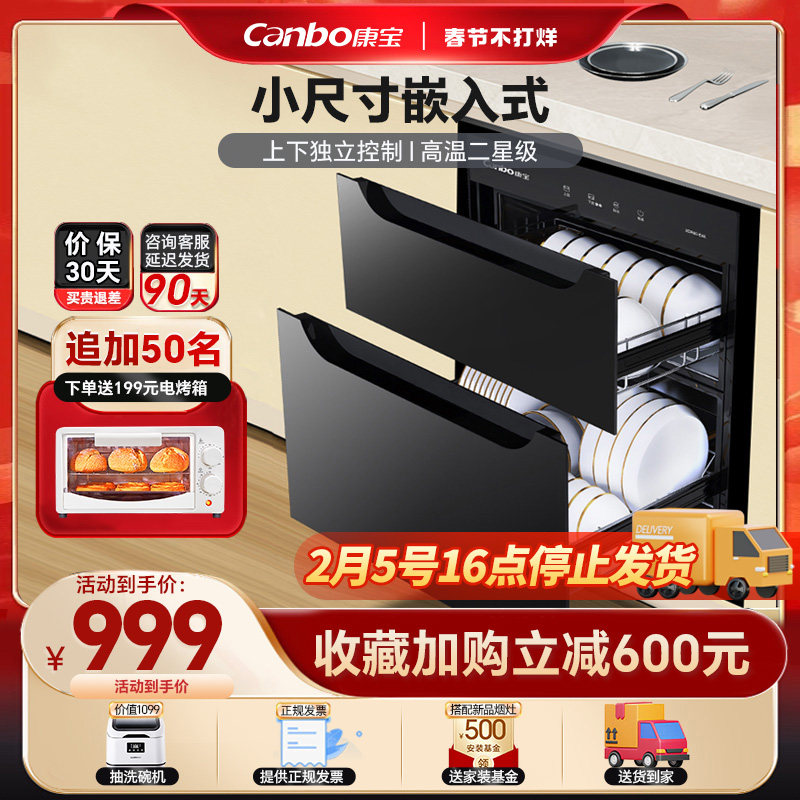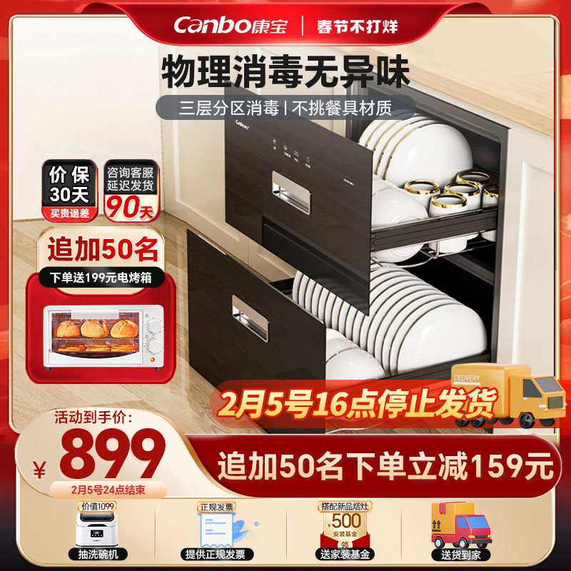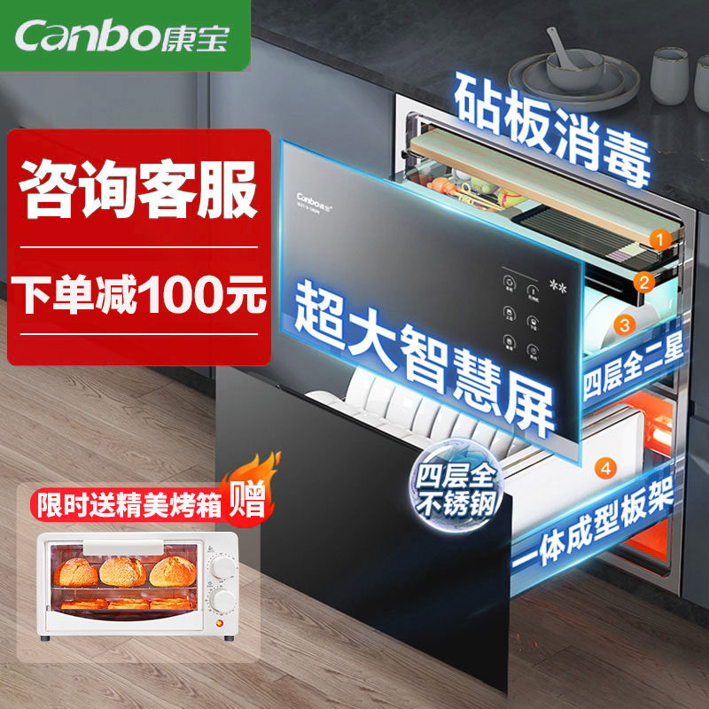 券 600元销量100康宝E4E小尺寸大容量家用镶嵌入式高温厨房碗筷收纳内嵌式消毒柜