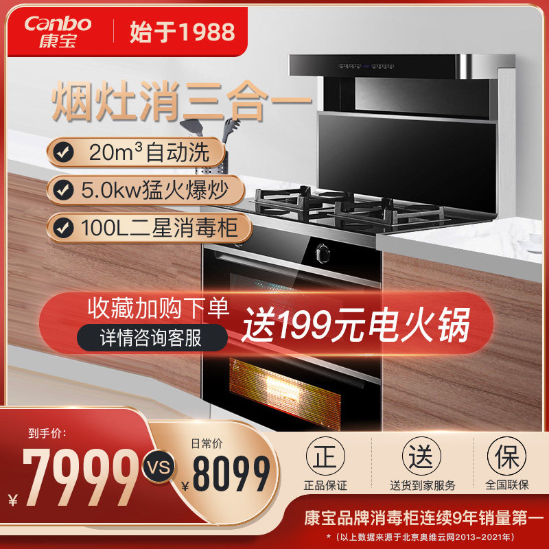 券 300元销量50康宝M5集成灶一体式家用厨房自动洗油烟机燃气灶消毒柜组合整体