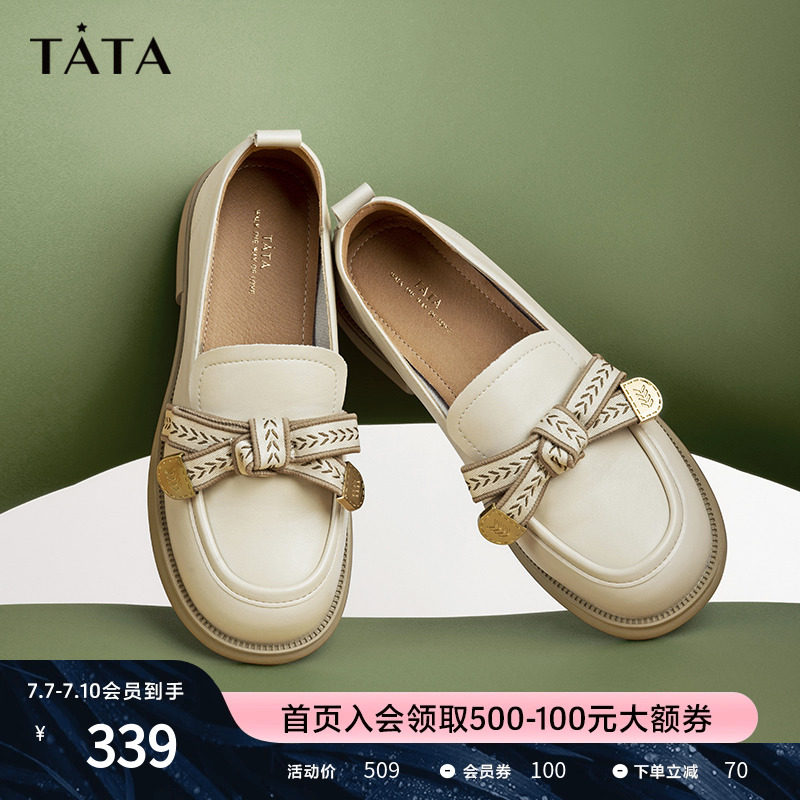券 100元销量300Tata他她通勤乐福鞋女平底单鞋英伦风一脚蹬皮鞋春季新款7QC23AA2