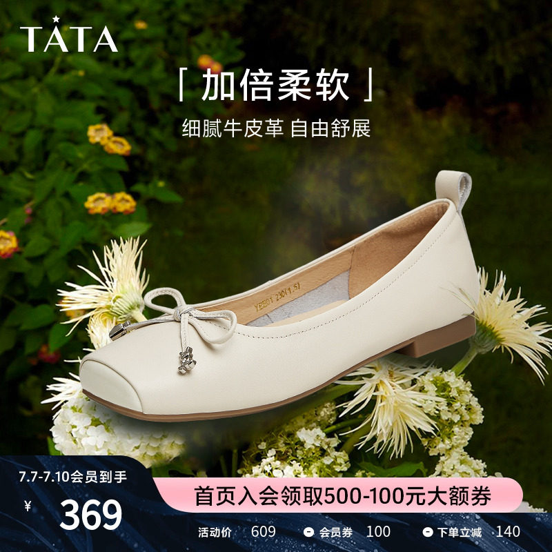 券 80元销量100Tata他她平底单鞋女仙女风软底小皮鞋女豆豆鞋2023秋新款Y8GA3CQ3