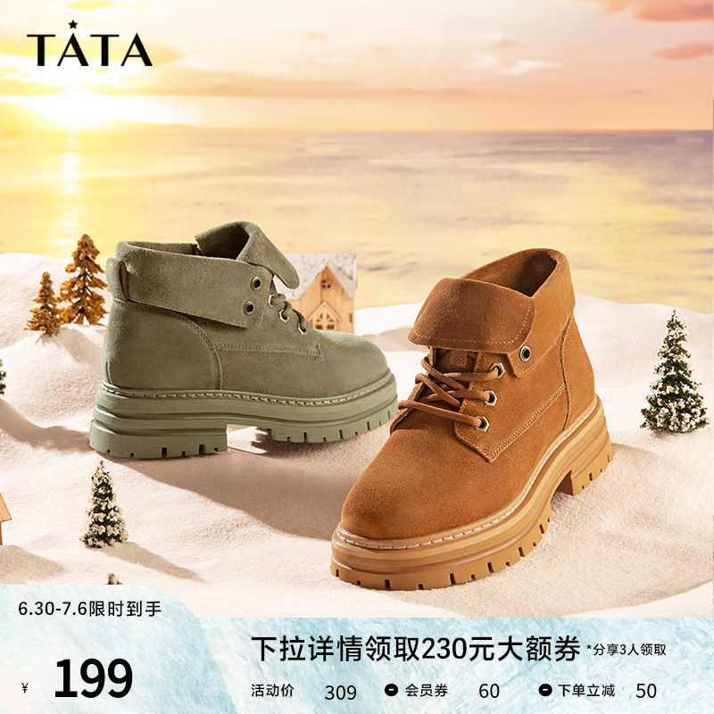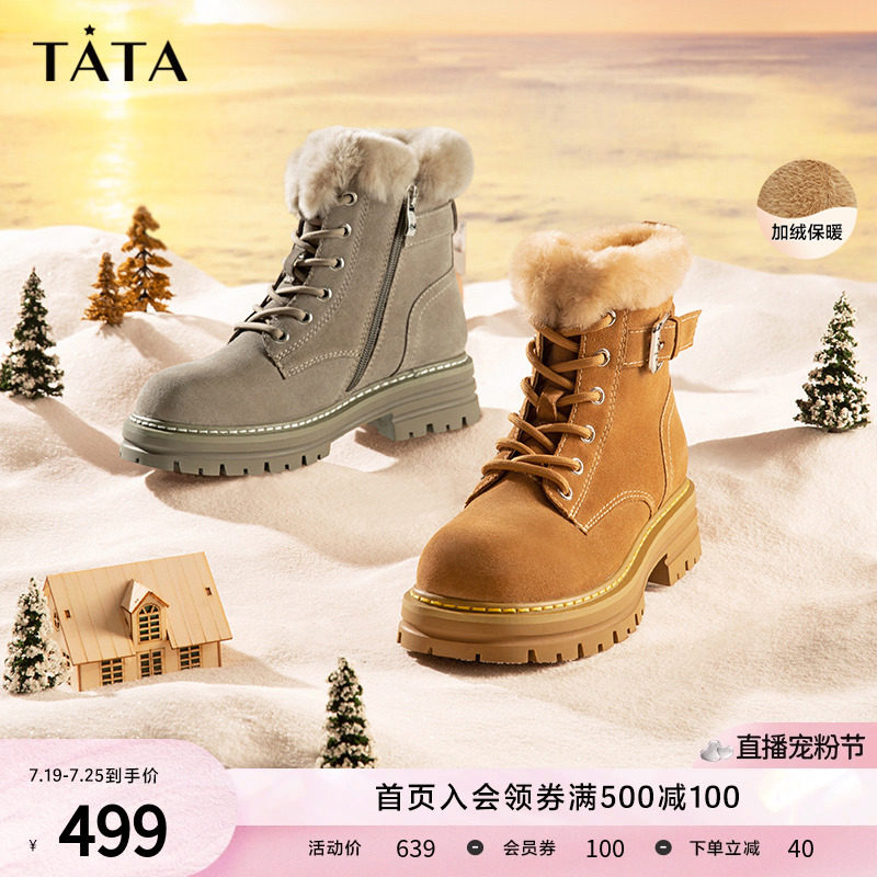 券 100元销量4Tata他她加绒英伦马丁靴女秋冬保暖户外雪地靴2022年新款W6ZA1DD2