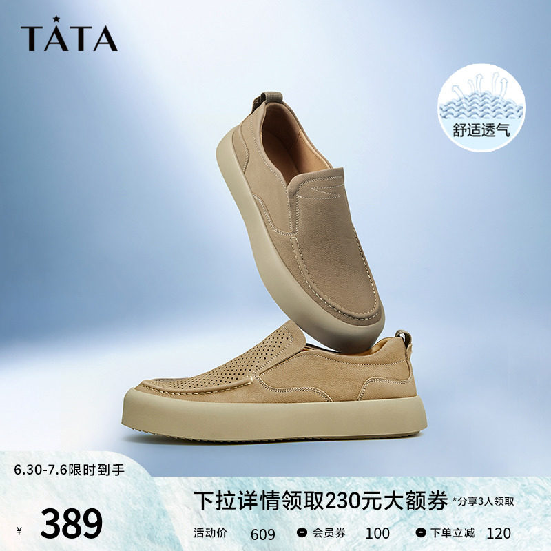 券 100元销量100Tata他她透气懒人鞋男士豆豆鞋真皮鞋男爸爸鞋2023春新款TCM01AM3