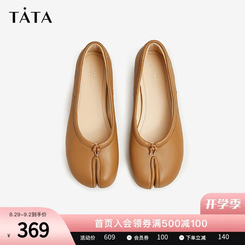 券 100元销量200Tata他她分趾鞋女平底单鞋女豆豆鞋芭蕾马蹄鞋2023秋新款YDU01CQ3