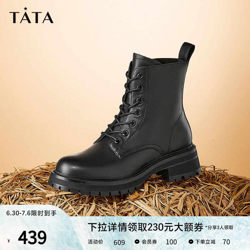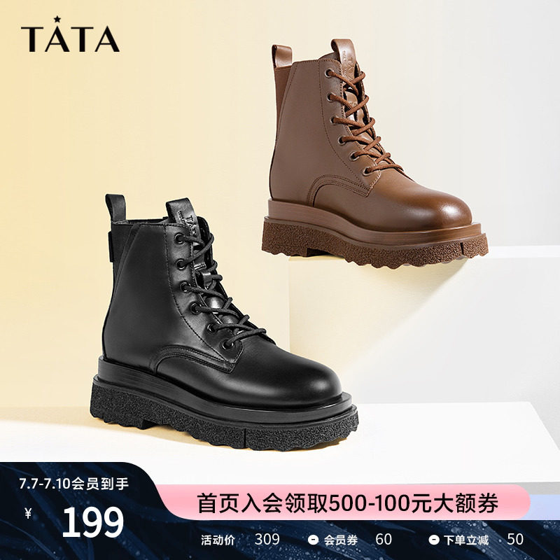 券 100元销量68Tata他她黑色厚底英伦风马丁靴短靴秋冬加绒女靴2022新款WAC02DD2