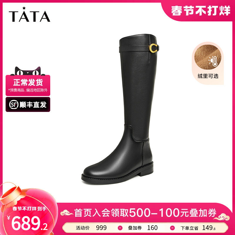 券 100元销量4Tata他她休闲拼接高筒骑士靴女显瘦纯色长筒靴2022冬新款W6NA1DG2