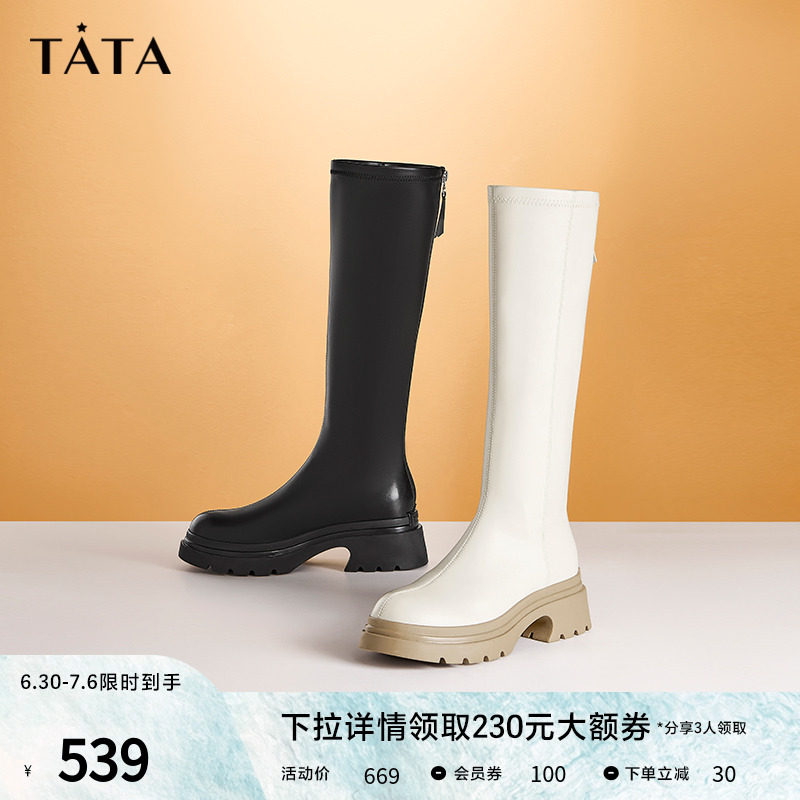 券 60元销量5Tata他她厚底高筒靴女新款潮骑士靴女不过膝长靴冬季潮流7PY80DG1