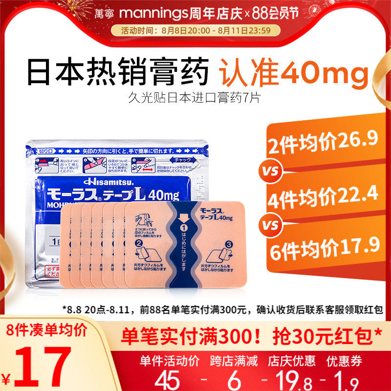 万宁Hisamitsu日本久九光贴膏温感镇痛消炎舒筋活络久光贴7片/包