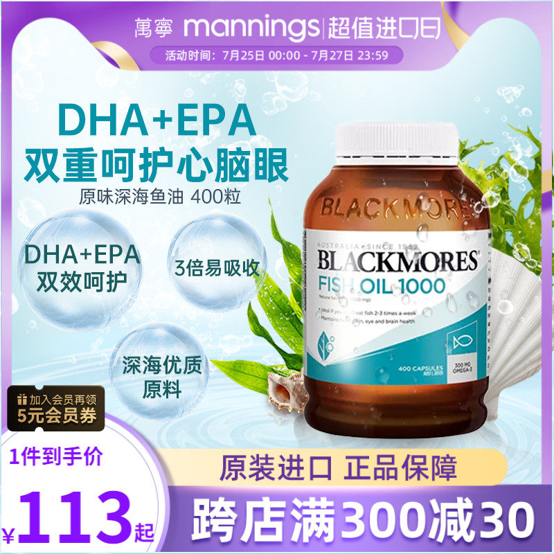 BLACKMORES澳佳宝原味无腥味深海鱼油胶囊3倍浓缩澳洲易吸收400粒