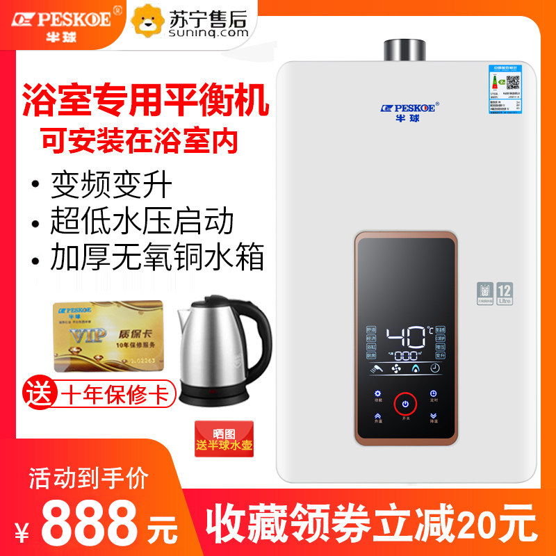 半球燃气热水器10升12升家用天然气平衡式卫生间增压洗澡液化煤气