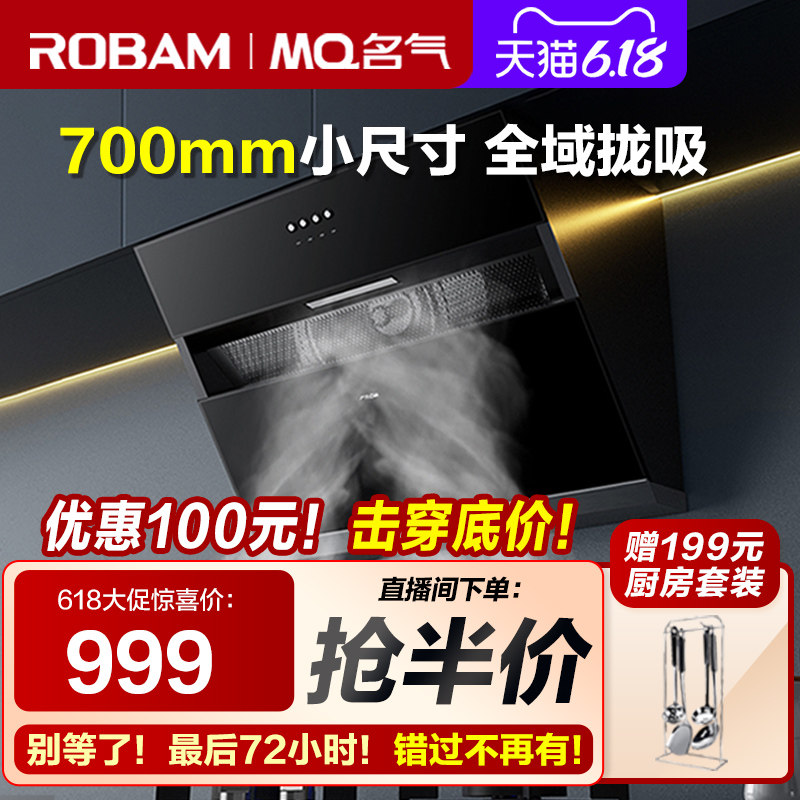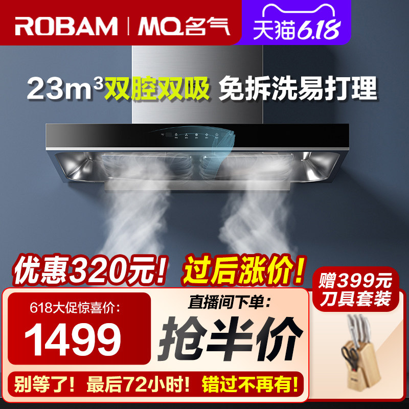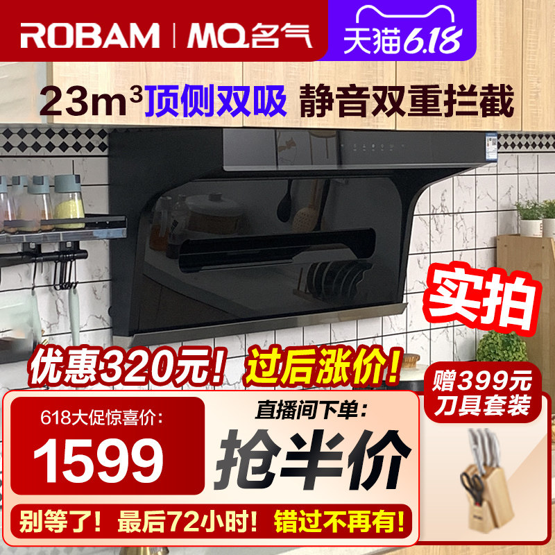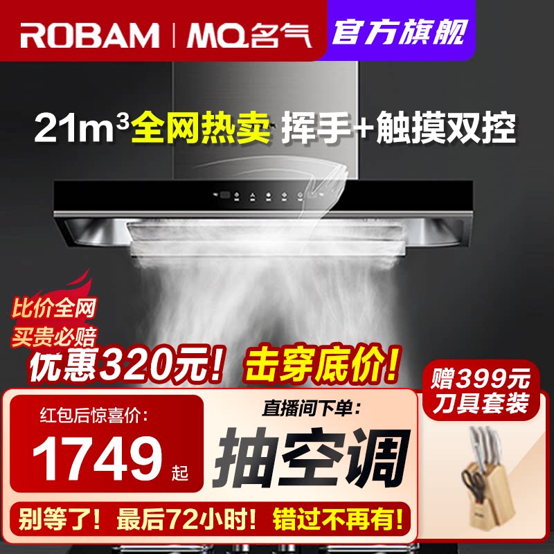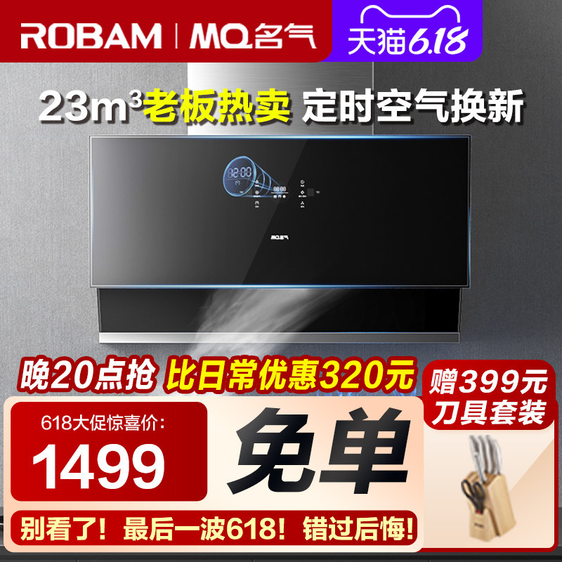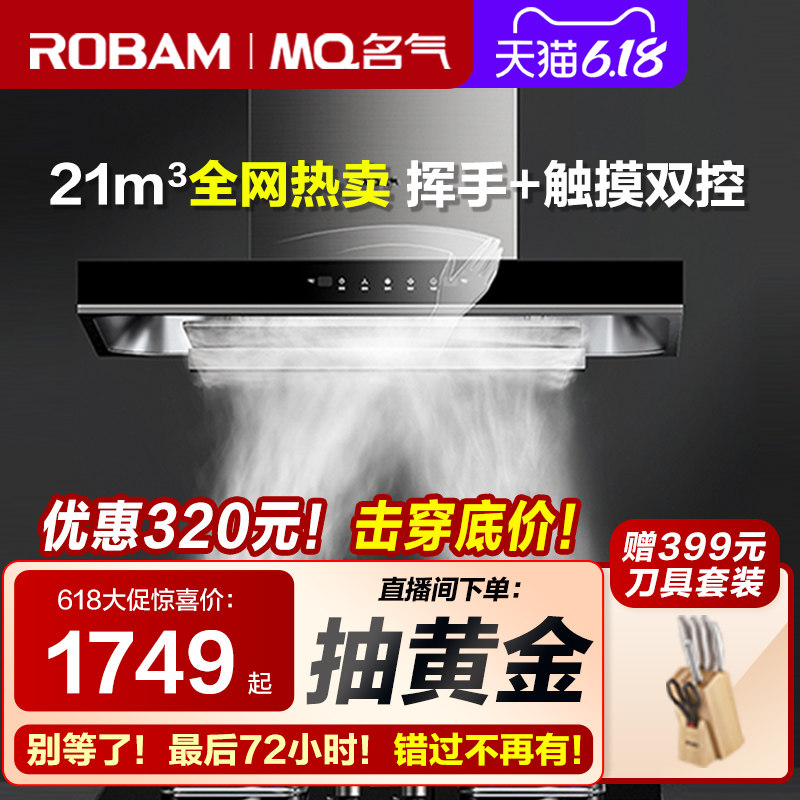 券 100元销量1000老板油烟机名气抽油烟机燃气灶套餐烟机灶具大吸力双吸吸油机6518
