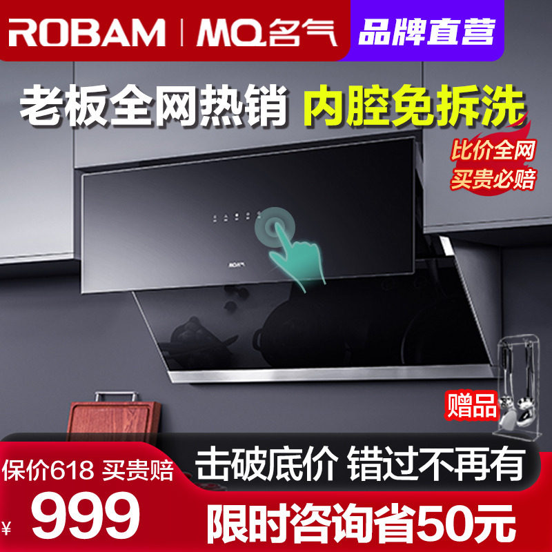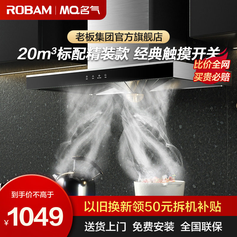 券 100元销量100老板油烟机名气抽油烟机家用厨房吸油机大吸力6518官方旗舰店官网