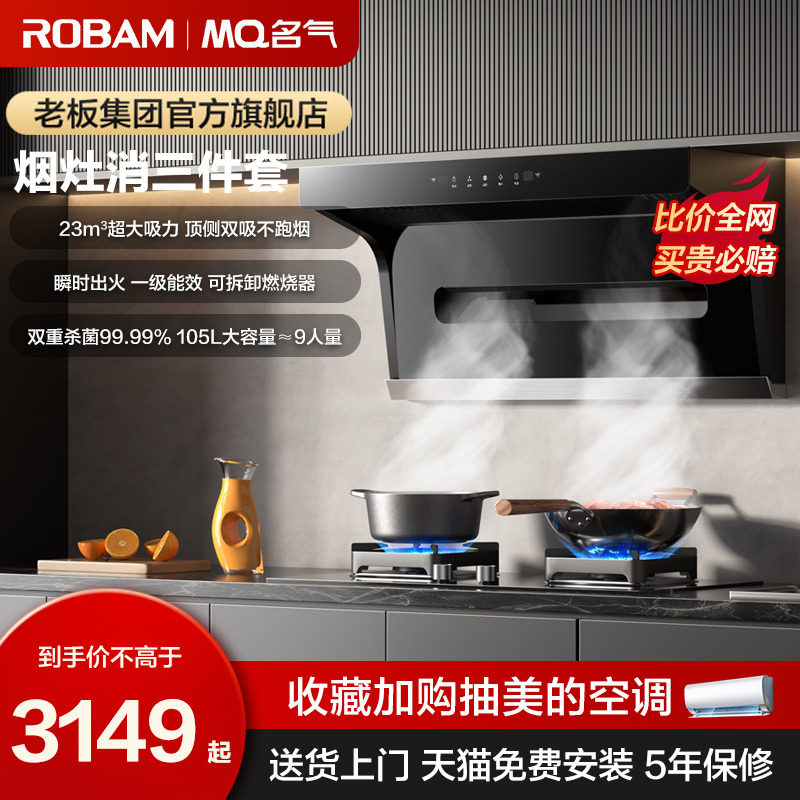 券 150元销量700老板油烟机名气顶侧双吸油烟机燃气灶套餐抽油烟机灶具套装A5503
