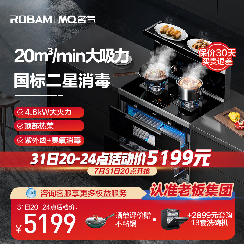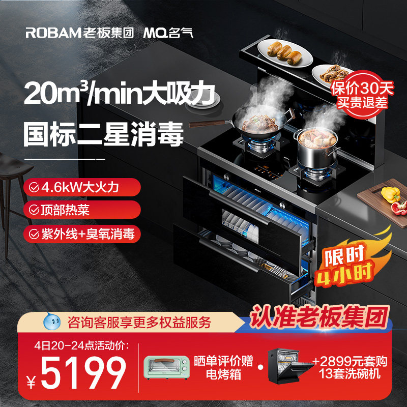券 200元销量0老板集团出品900FT双腔蒸烤箱一体集成灶家用油烟机燃气灶套餐