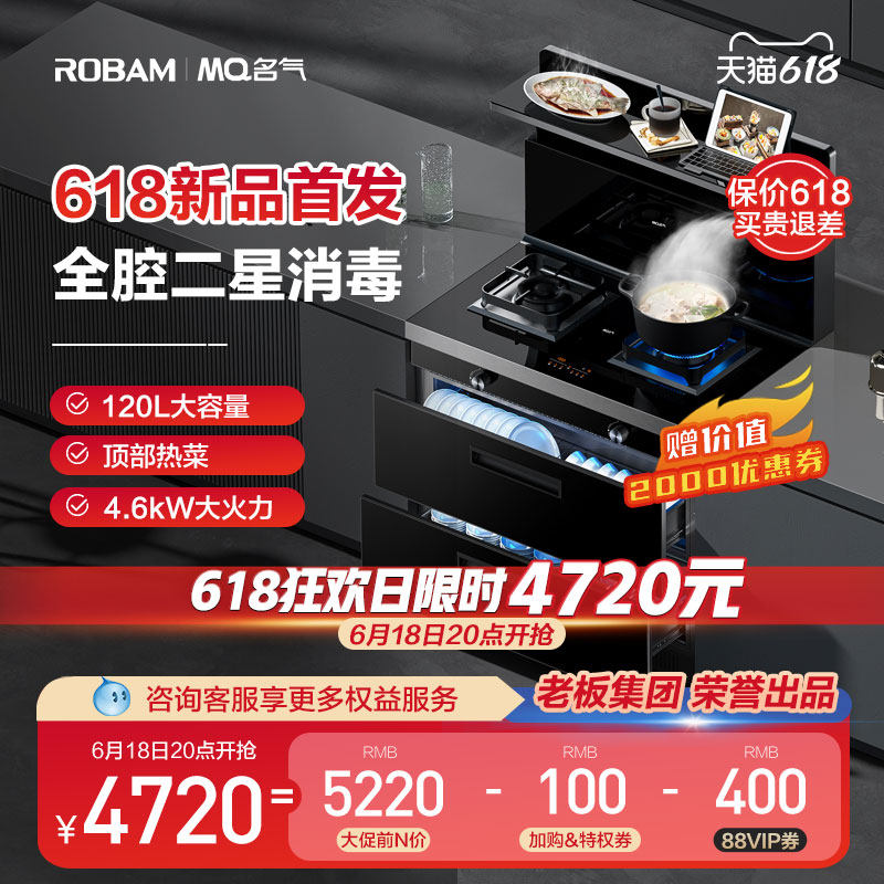 券 200元销量0老板集团出品名气消毒柜集成灶家用大吸力大火力912FX