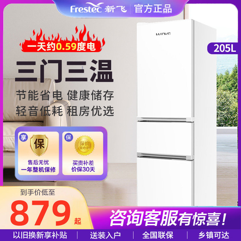 券 20元销量600新飞207升三开门冰箱家用小型租房节能双开门三门式超薄电冰箱