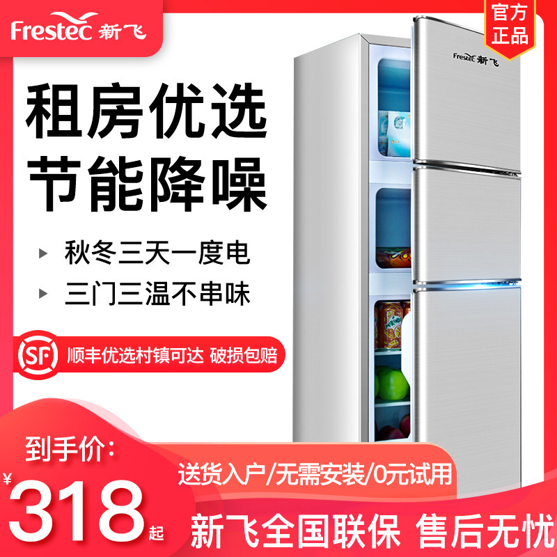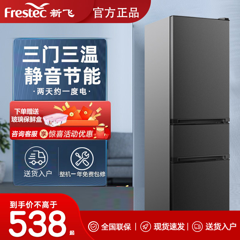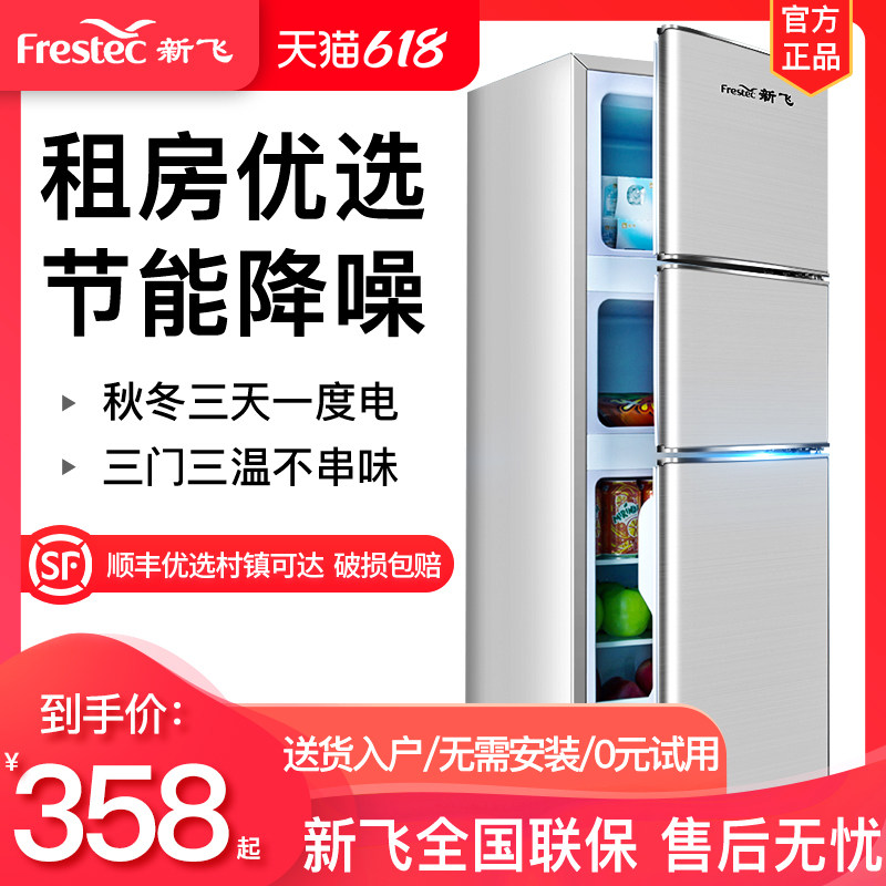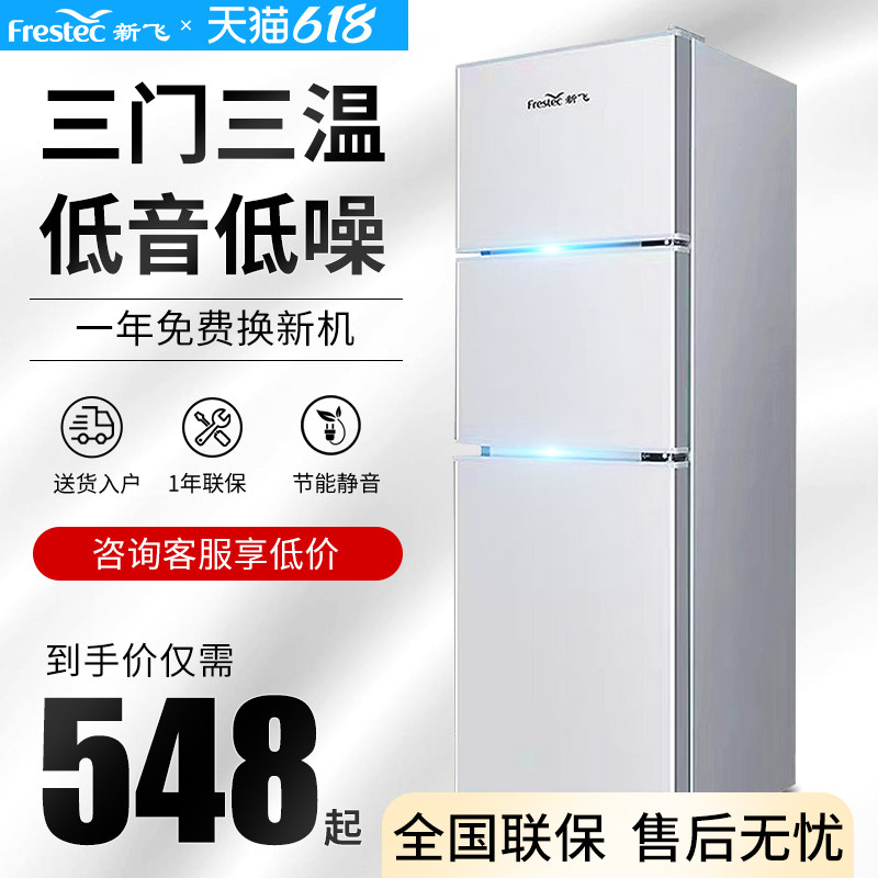 券 40元销量7000新飞三门冰箱小型冰箱家用宿舍租房风冷无霜冷藏冷冻节能大容量