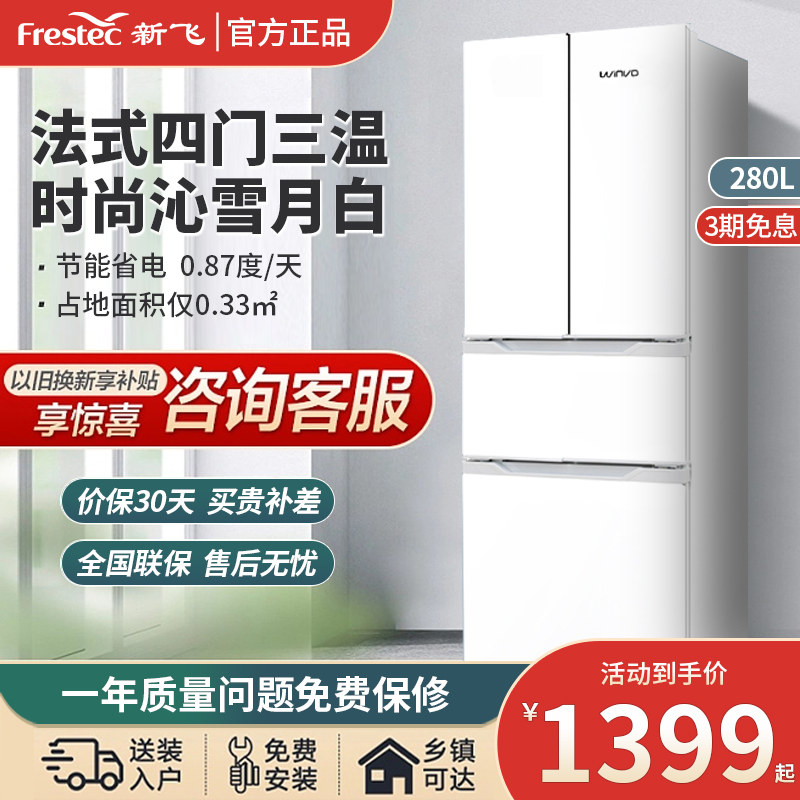 券 40元销量10新飞280L双门三门冰箱家用租房宿舍风冷无霜法式多四门十字电冰箱