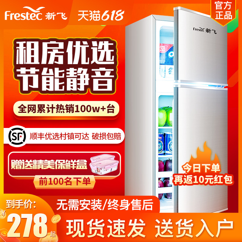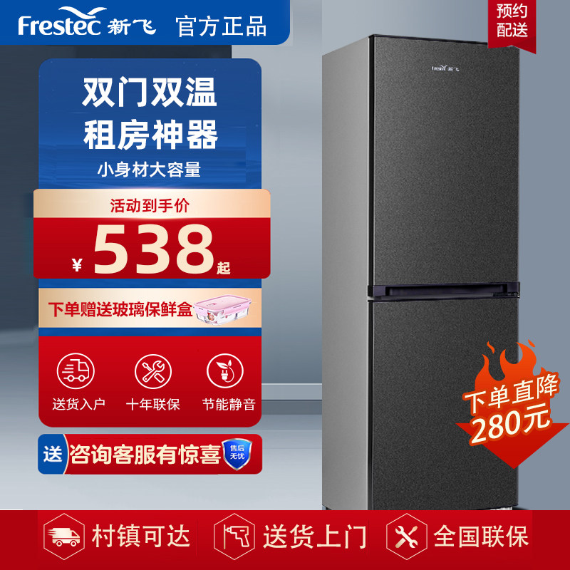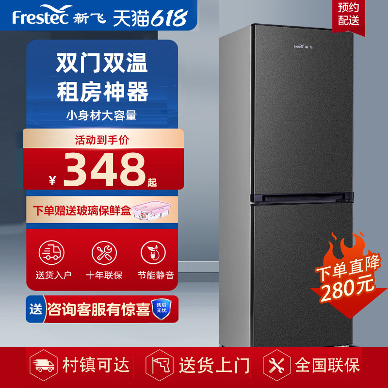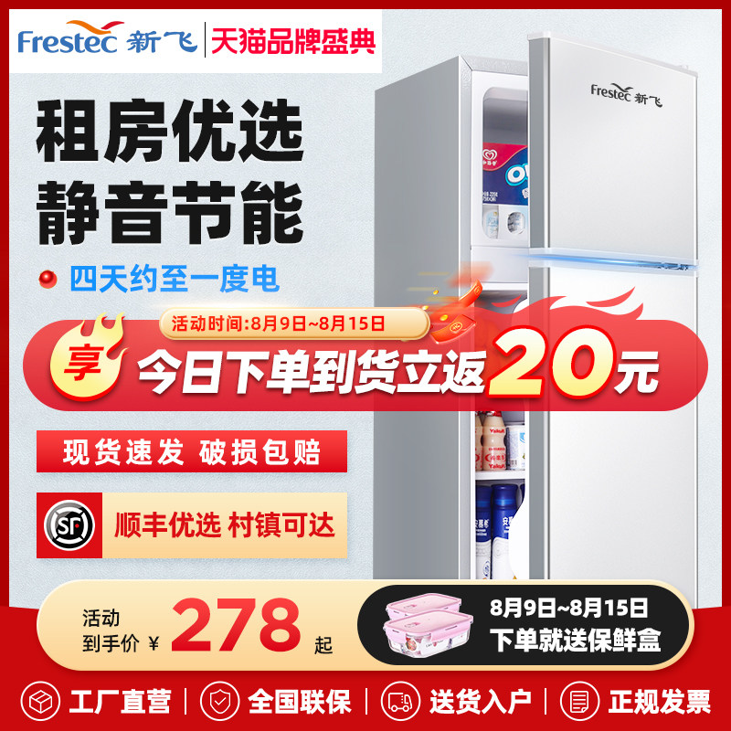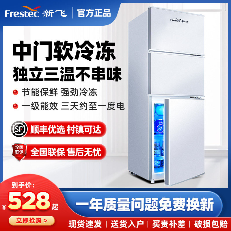 券 20元销量10新飞三开门小冰箱冷藏冷冻宿舍家用小型节能大容量双开门电冰箱