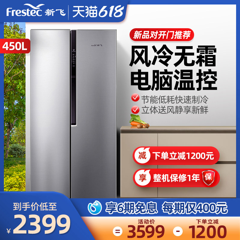 新飞450升大容量风冷对开门冰箱家用节能冷藏冷冻双开门大型冰箱