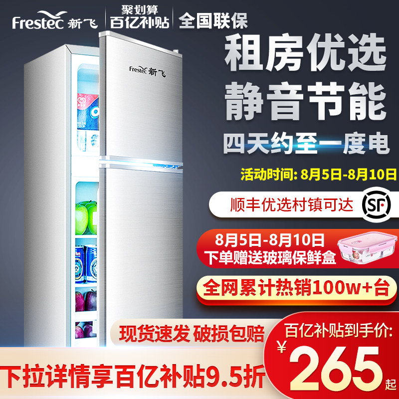 券 40元销量10新飞家用小冰箱双门三门节能静音一级能效租房宿舍冷藏冷冻电冰箱