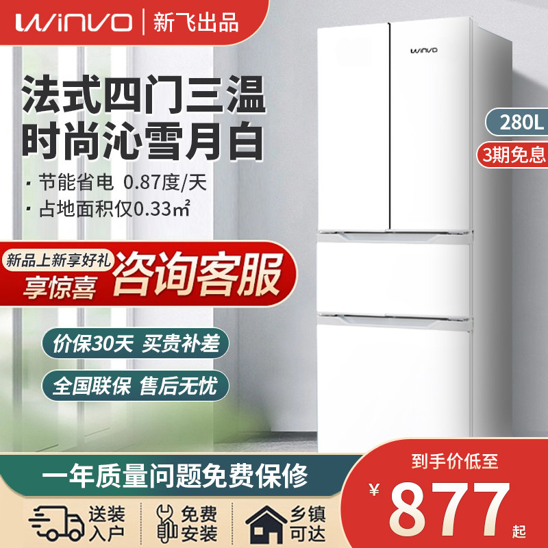 券 10元销量27新飞280L双门三门冰箱家用租房宿舍风冷无霜法式多四门十字电冰箱