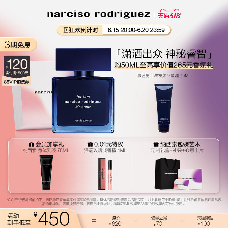 【618立即抢购】纳西索narciso幕蓝男士淡香精 清新持久 纳西素
