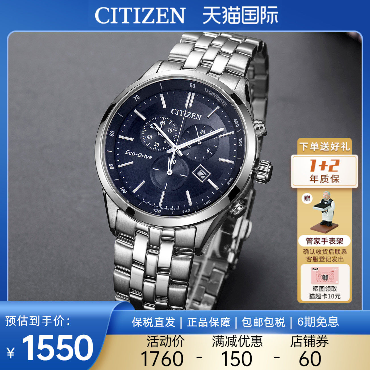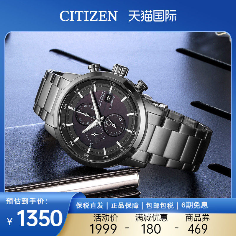 券 60元销量10西铁城Citizen手表男光动能商务休闲运动钢带男士腕表CA0690-88L