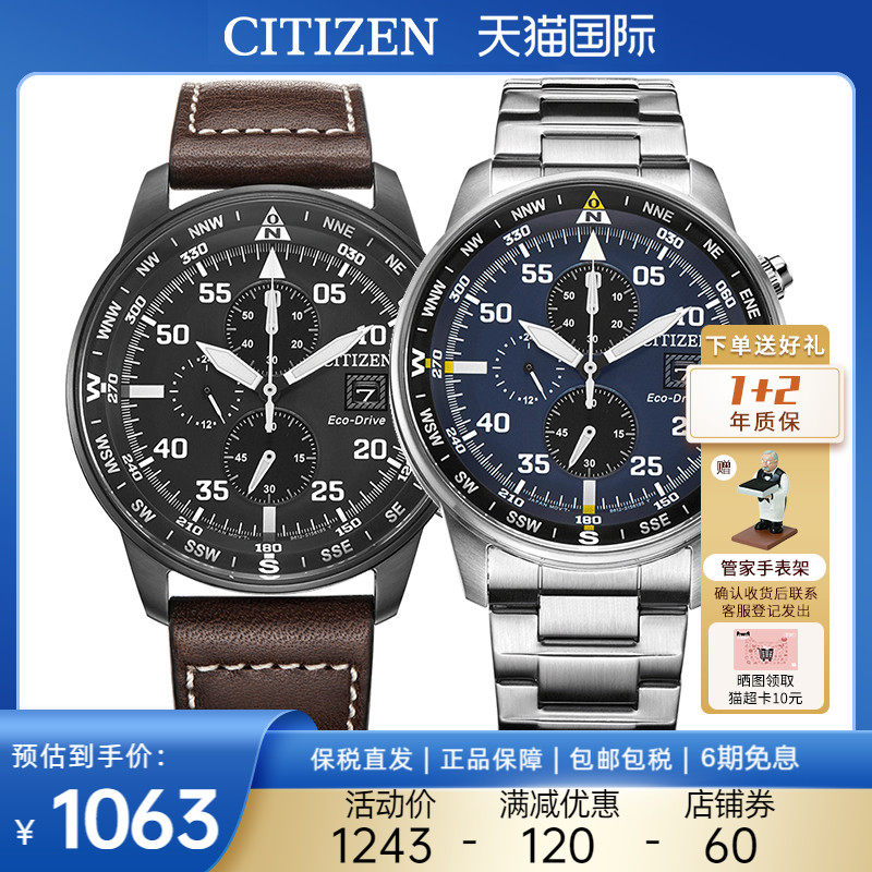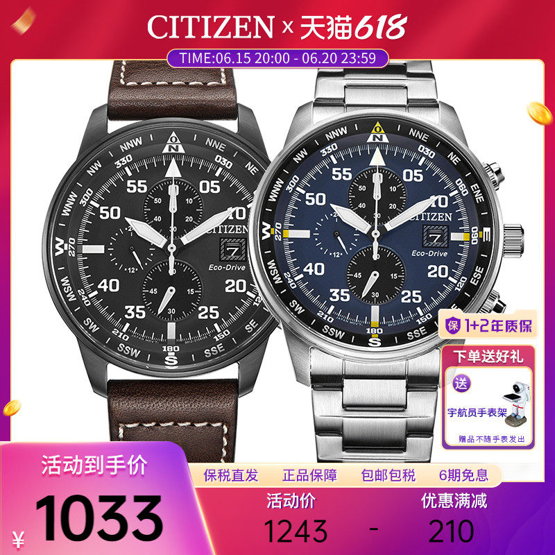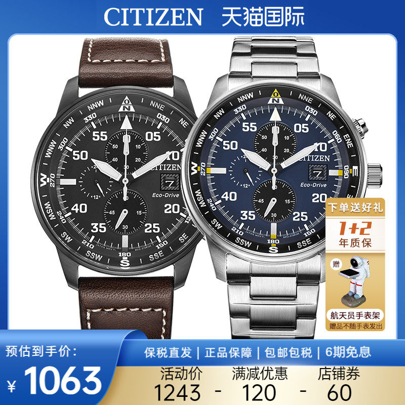 券 60元销量8citizen西铁城手表男光动能日本休闲皮带防水运动男士腕表CA0695