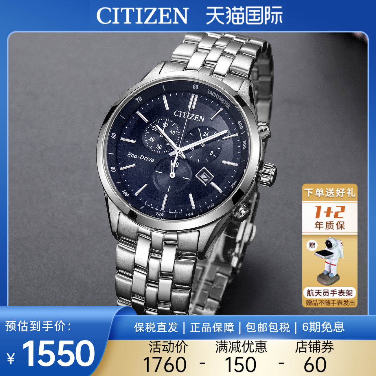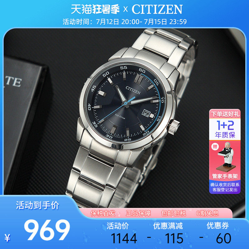 券 60元销量8西铁城Citizen手表男光动能潮流蓝商务休闲个性钢带表BM7140-54L