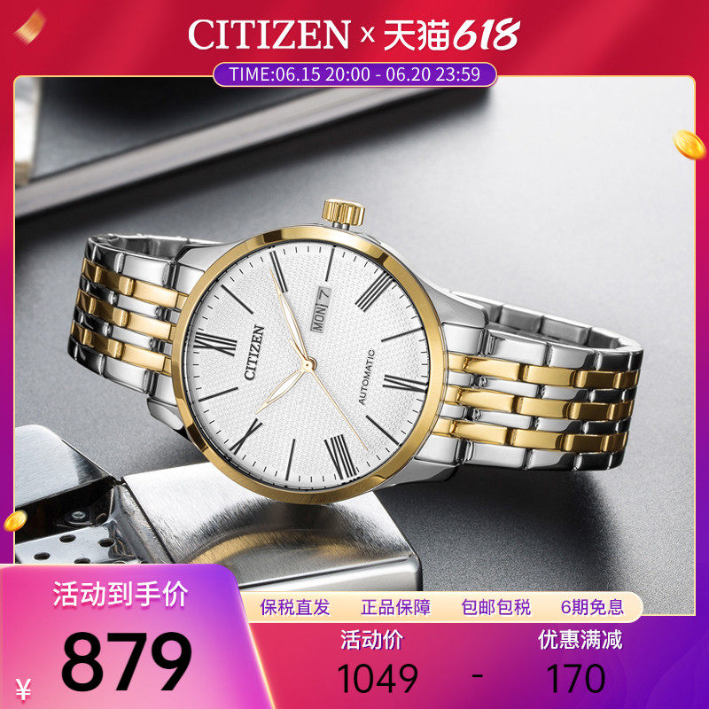 券 20元销量7Citizen西铁城手表男自动机械经典双历商务典雅钢带表NH8354-58A