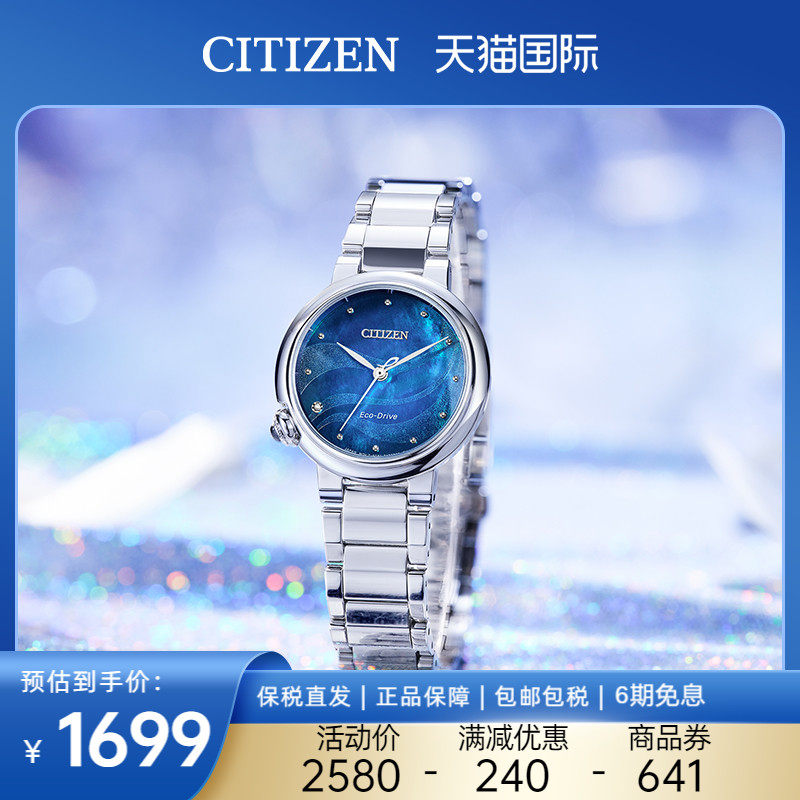citizen日本西铁城光动能手表女梦幻贝母盘钢带女表EM0910-80D