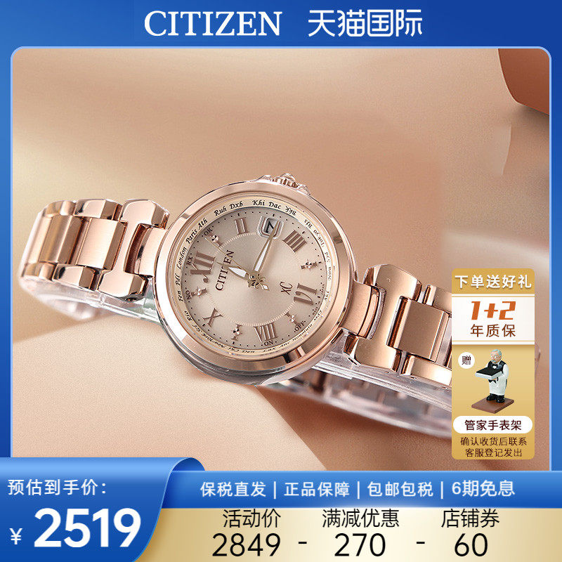 券 60元销量6Citizen西铁城手表女光动能xC系列玫瑰金女士钢带腕表EC1032-54X