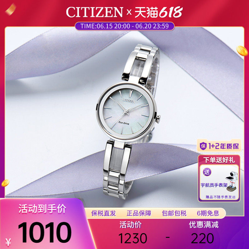 券 60元销量8西铁城Citizen手表女光动能水晶装饰贝母潮流时尚女表EX1480-15D