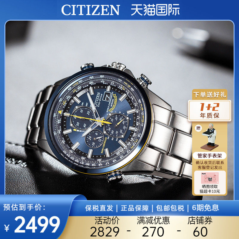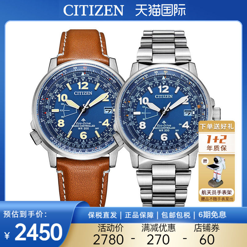 券 60元销量10西铁城蓝天使手表男光动能空中之鹰电波钢带表礼物礼品AT8020-54L