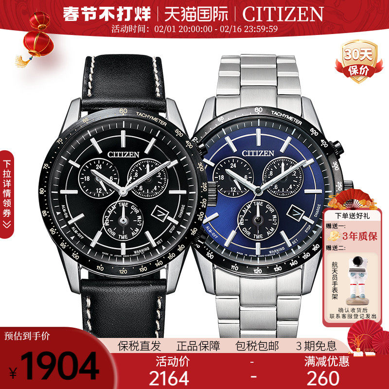 券 60元销量4Citizen西铁城日本多局电波防水运动潮流光动能男士腕表CB0240