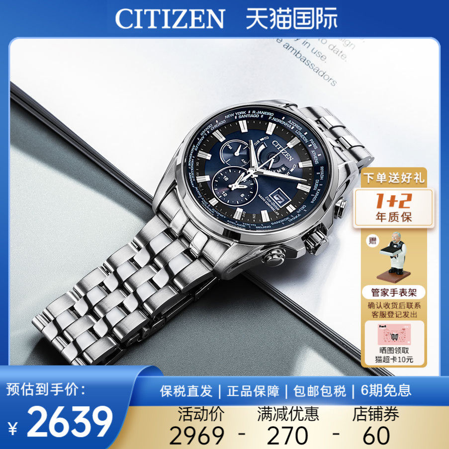 券 60元销量3Citizen西铁城手表男光动能儒雅成熟商务电波男士腕表AT8113-12H
