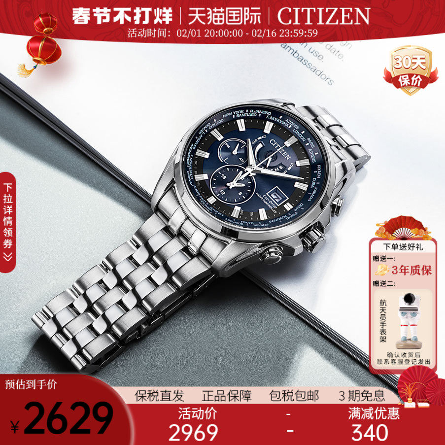 券 60元销量10Citizen西铁城手表男光动能商务多局电波钢带男士腕表AT9031-52L