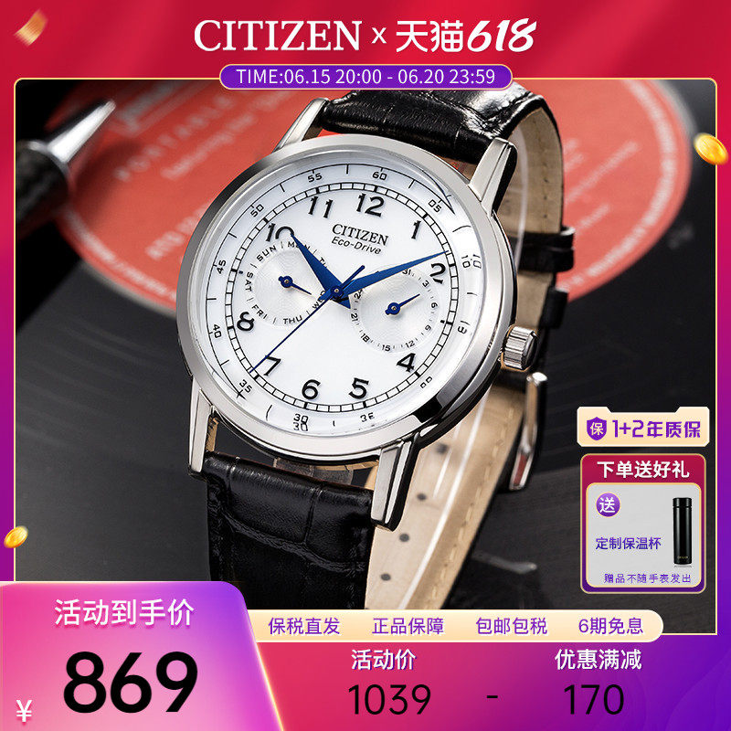 券 60元销量10Citizen西铁城手表男光动能商务休闲万年历皮带腕表BL5496-96L