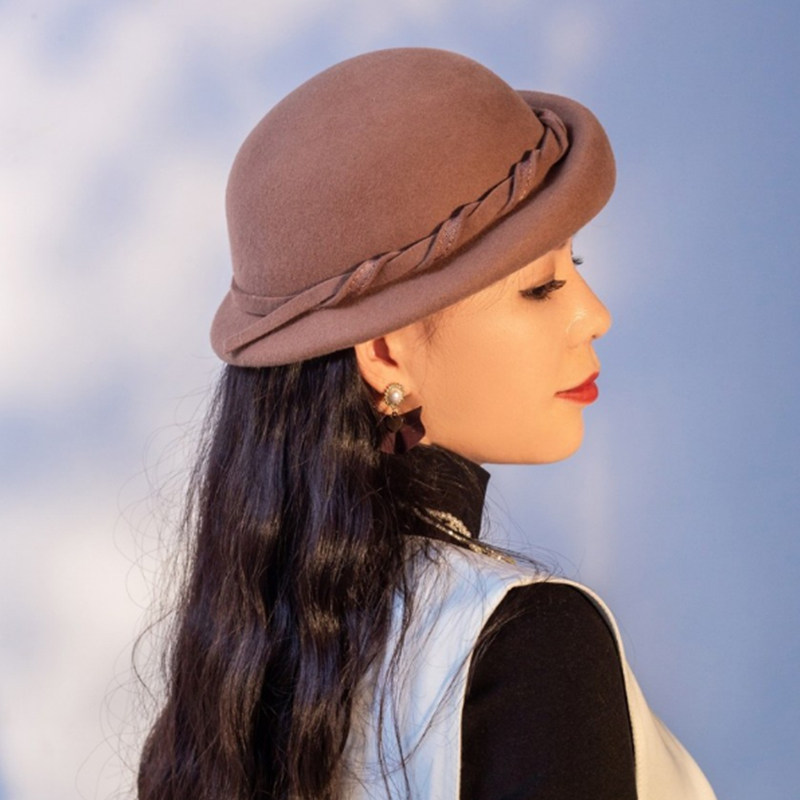 券 5元销量10诗丹凯萨2023新款帽子女秋冬季赫本风小礼帽女复古优雅羊毛呢帽女