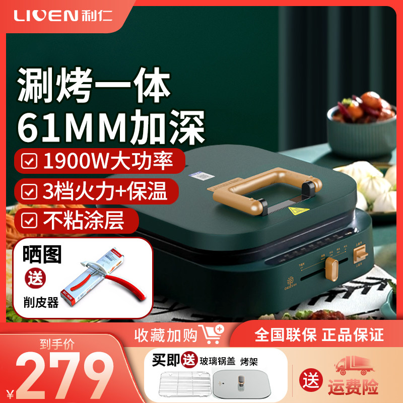 利仁电饼铛家用双面加热加深加大烙饼锅板栗机多功能一体锅电煎锅