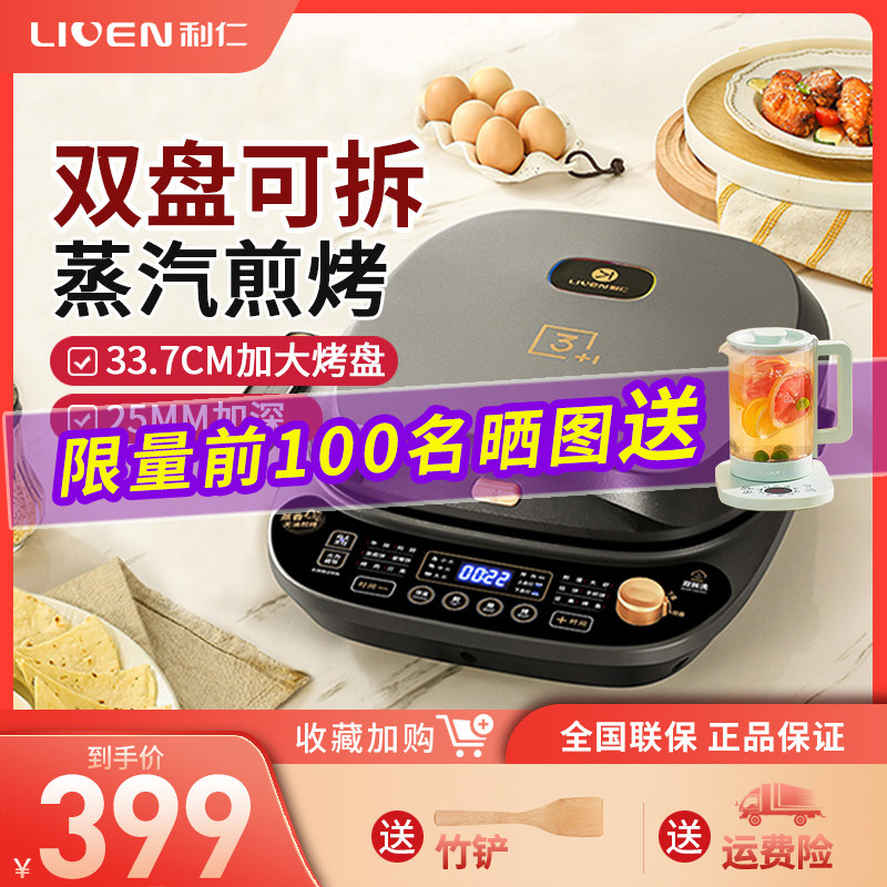 券 110元销量100利仁电饼铛家用双面加热上下可拆洗盘多功能加深加大烙饼锅新款