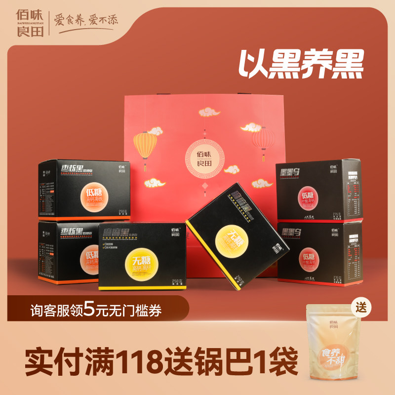 券 5元销量14佰味良田以黑养黑孕妇零食礼包送礼健康无糖黑芝麻饼小吃营养食品