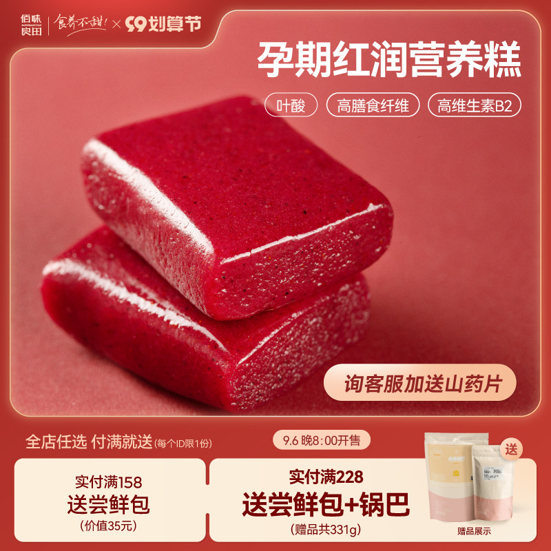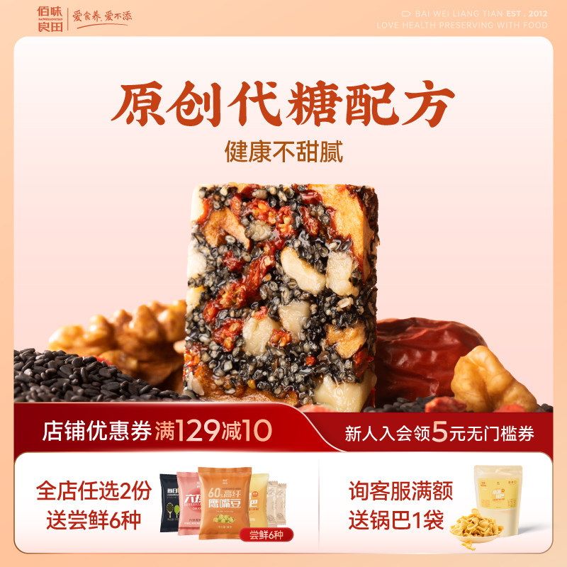 券 5元销量100佰味良田六珍糕红枣核桃枸杞黑芝麻糕孕期营养零食控糖无糖精食品