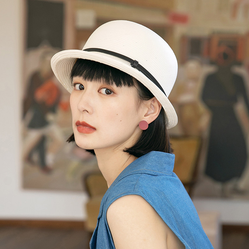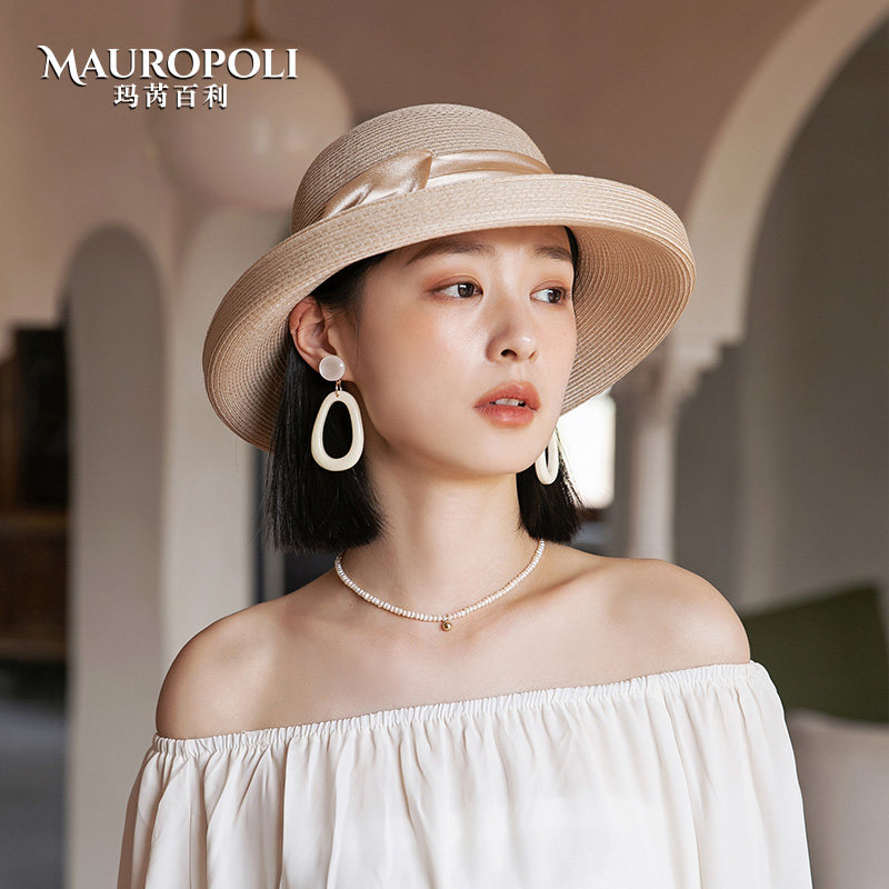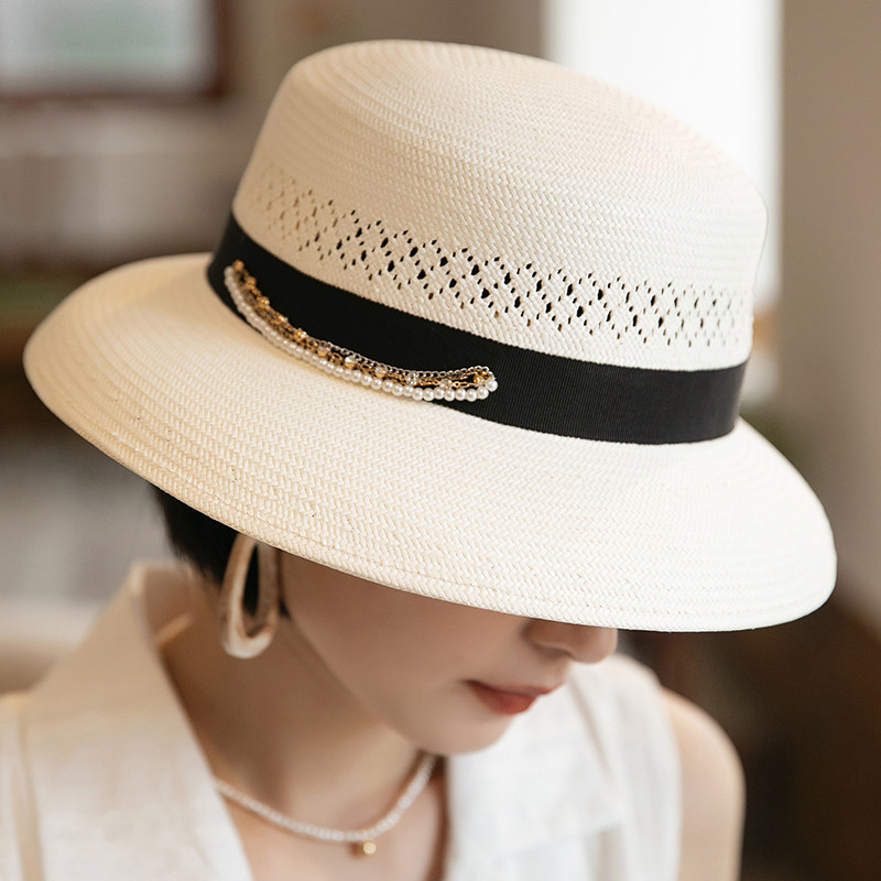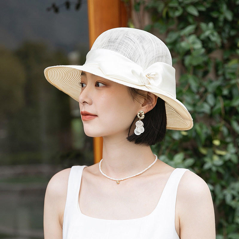 券 5元销量4白色礼帽女法式卷边气质名媛遮阳帽女式夏季草帽英伦复古时尚盆帽