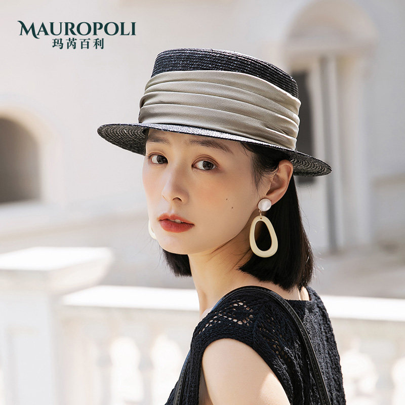 券 5元销量6遮阳帽女夏新款优雅复古针织平顶礼帽时尚防晒太阳帽春秋平檐帽子