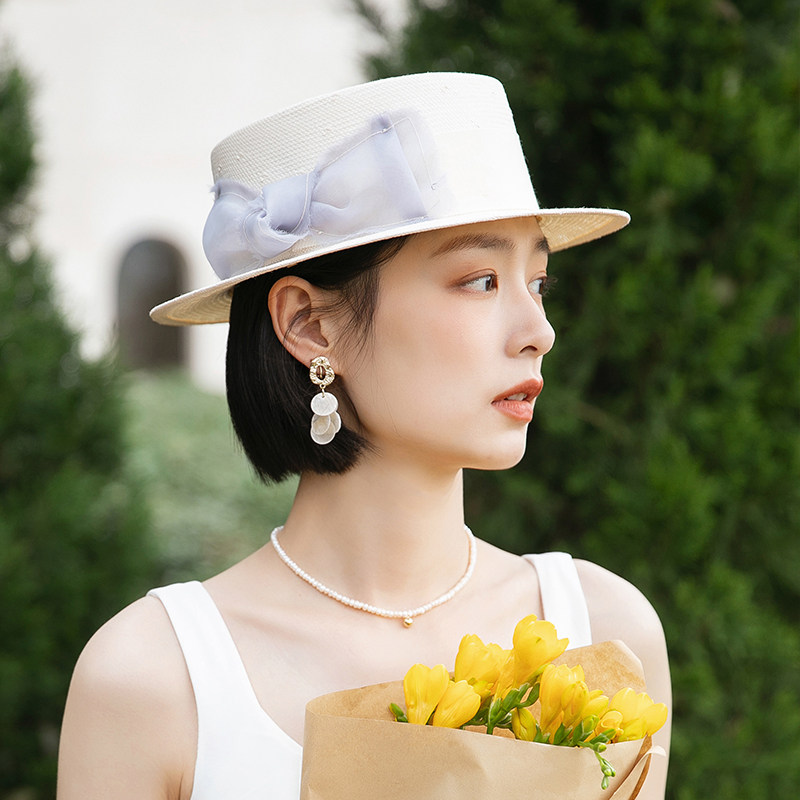 券 5元销量10白色礼帽女夏季新款法式复古平顶帽防晒平檐草帽时尚百搭遮阳帽子