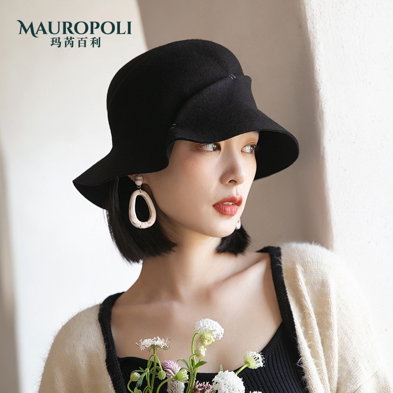 券 5元销量100羊毛礼帽女秋冬不规则帽檐毡帽女英伦优雅复古时尚毛呢帽子女盆帽
