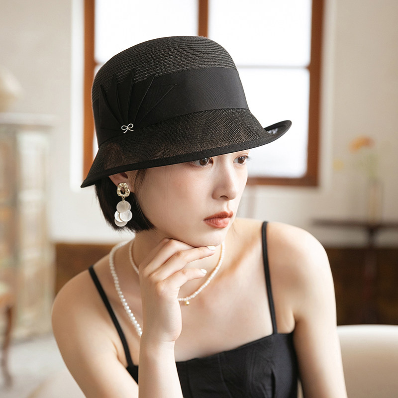 券 5元销量4草帽女新款复古优雅麻纱小礼帽夏季薄款透气草编遮阳帽时尚防晒帽